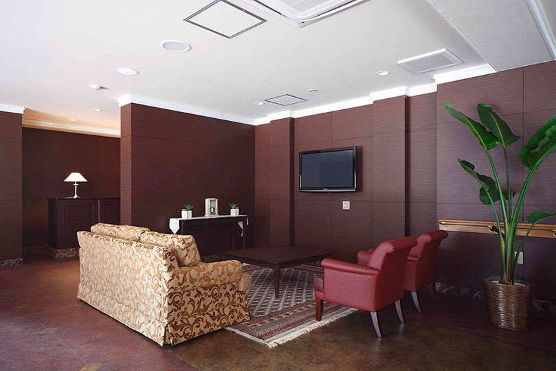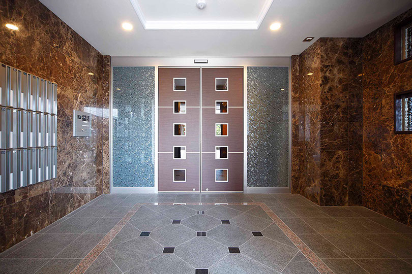 来訪者は、フロントを通り入館するシステム。館内には、24時間スタッフが常駐しております。ご入居者の安全をお守りします。